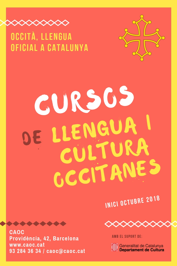 Tots els que participeu en algun dels cursos del CAOC tindreu preferència per assistir a les diverses activitats que l’entitat organitza, com conferències, tallers de cultura occitana, presentacions de llibres, sessions de teatre i cinema, etc. Podreu adquirir llibres d’editorials occitanes o accedir a la librariá occitana del CAOC. També tindreu informació de primera mà de l’actualitat occitana, immersa avui dia en una activa renaixença.