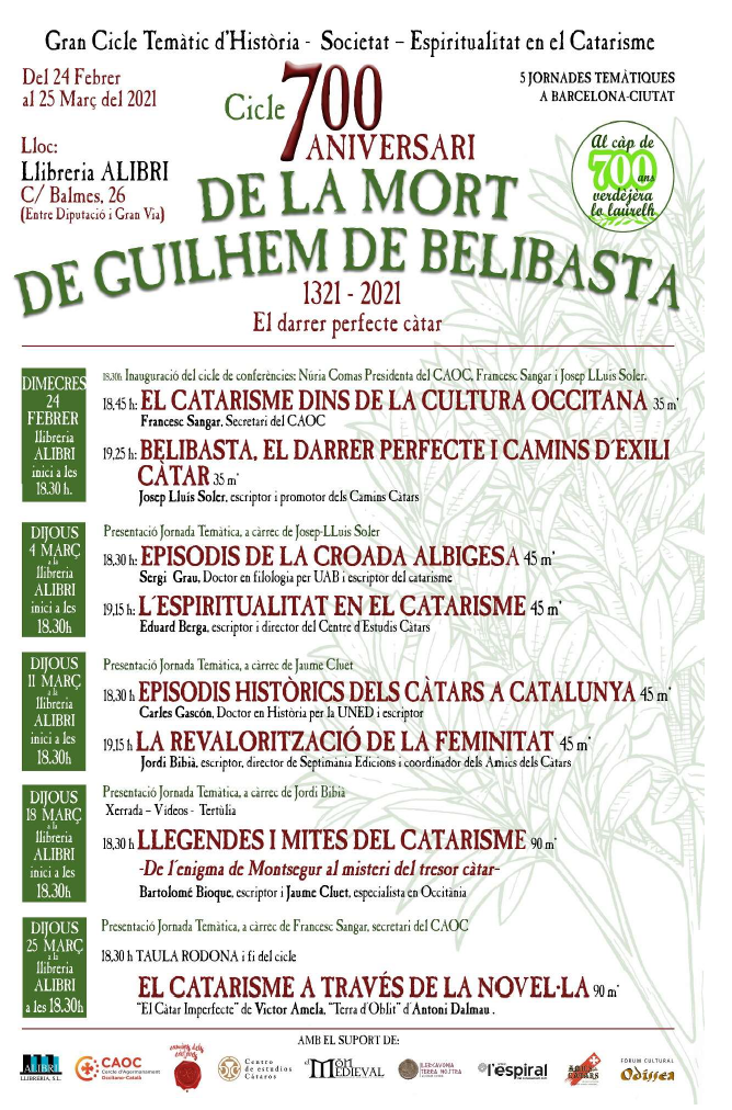 Amb motiu dels 700 anys de l’execució de l’últim perfecte càtar, en Guilhèm de Belibasta a Vilaroja-Termenés, a l’Aude, s’ha organitzat un interessant cicle de conferències sobre els Bons Homes a la Llibreria Alibri de Barcelona, amb el suport, entre d’altres, del CAOC. Durant aquest cicle, que serà presentat per la nostra presidenta, la Núria Comas, dimecres dia 24 de Febrer, es tractarà sobre el moviment dels Bons Homes des de diverses perspectives, per a què els assistents puguin rebre una imatge diversa de la importància d’aquest moviment religiós durant els segles XII, XIII i XIV.