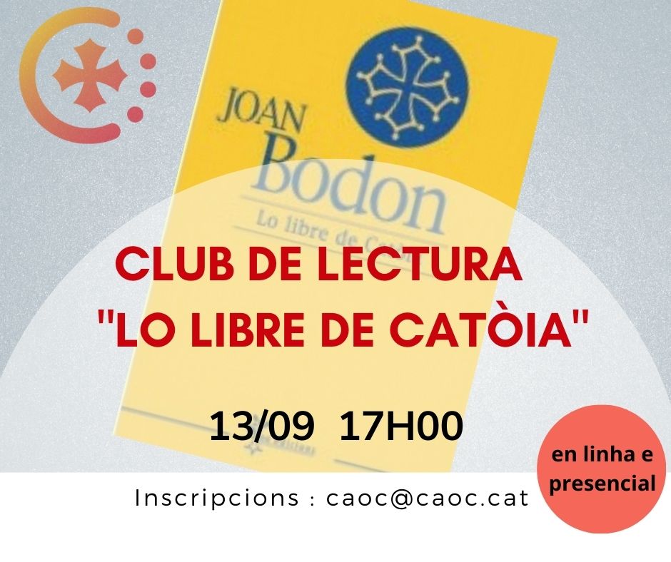 Vos convidam a participar a una session del Club de Lectura en occitan dobèrt a totes, ont podrètz parlar sus la vòstra lectura del libre prepausat Lo libre de Catòia: lo vòstre vejaire, ne legir d’estraches…