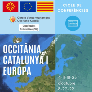 El dijous, 29 de novembre, com a cloenda del Cicle “Occitània, Catalunya i Europa” organitzat pel Centre Amics de la Unesco de Barcelona i amb la col·laboració del CAOC i del CIOC, tindrà lloc la conferència “40 anys del Cercle d’Agermanament Occitano-Català (CAOC)” i seguidament un concert-ball folk amb el grup de música occitana Mirabèl.