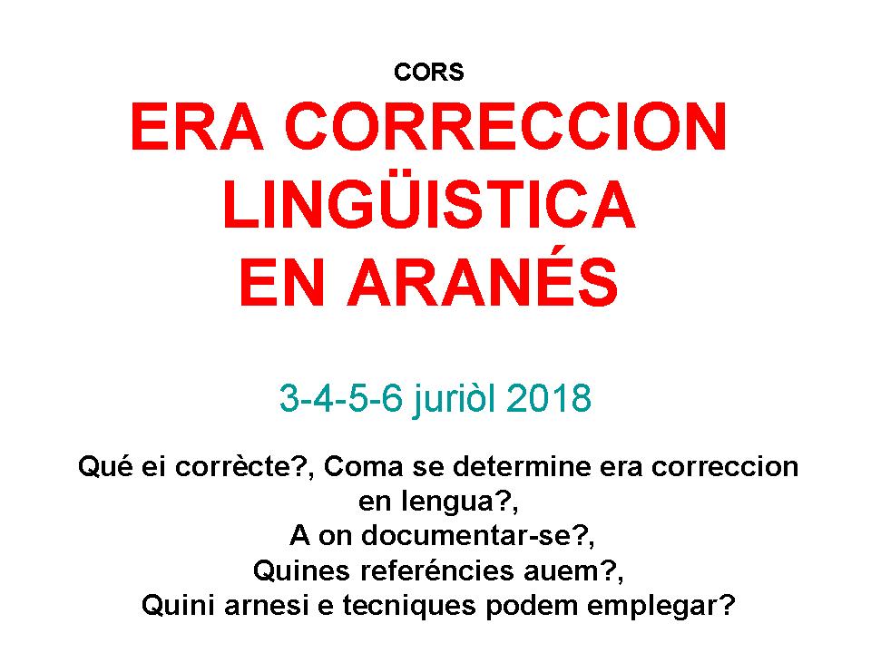 Cors “Era correcion lingüistica en aranés”. IEA.