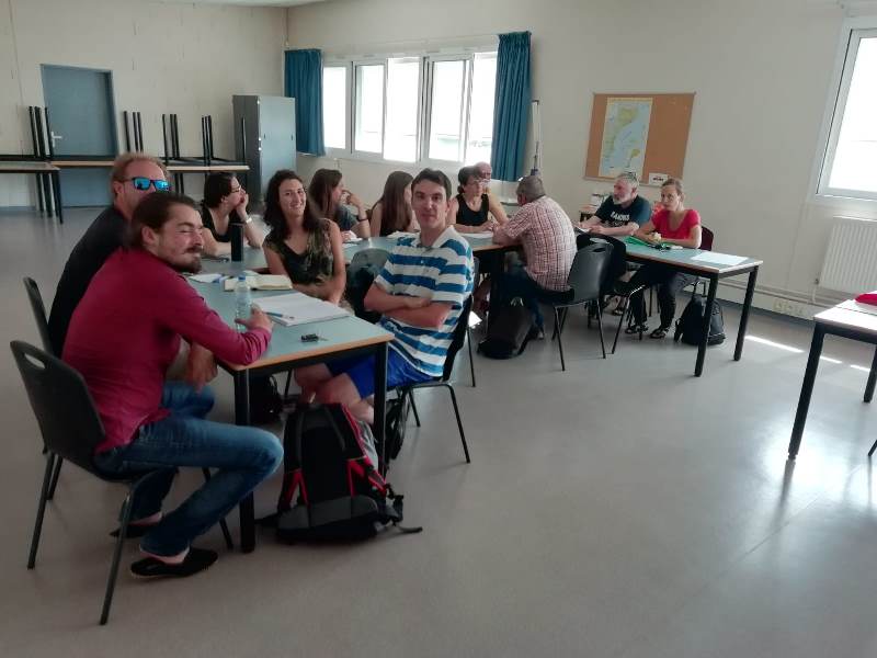 A 8:45 s’amassan totes los estagiaris de l’Escòla, e los professors presentan son cors.