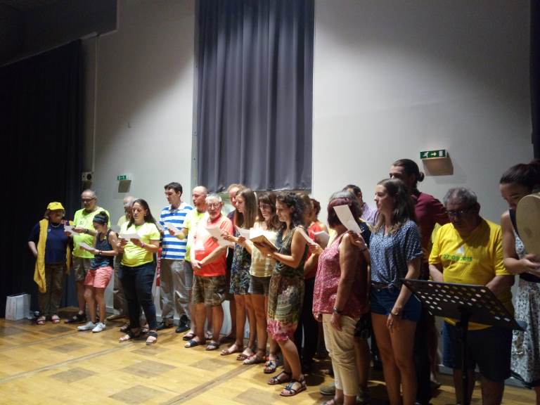 Los catalans collaboran en cantar Tot el poble cantarà, e ajudan per dansar la coreografia preparada al talhièr de catalan. Tot lo monde s’amusa plan, i a bravament un bon ambient.