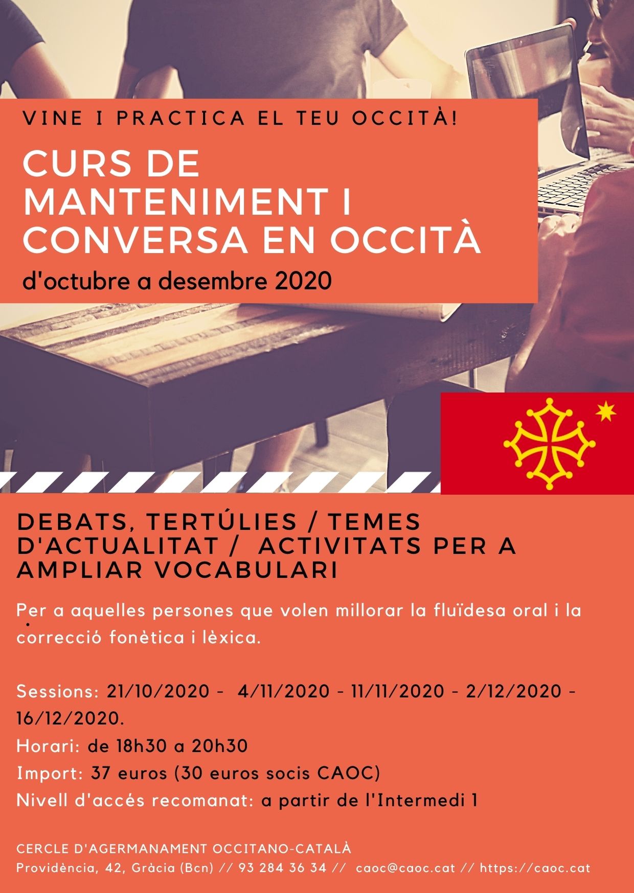 Per a aquelles persones que volen millorar la fluïdesa oral i la correcció fonètica i lèxica iniciem properament un curs de manteniment i conversa en occità.