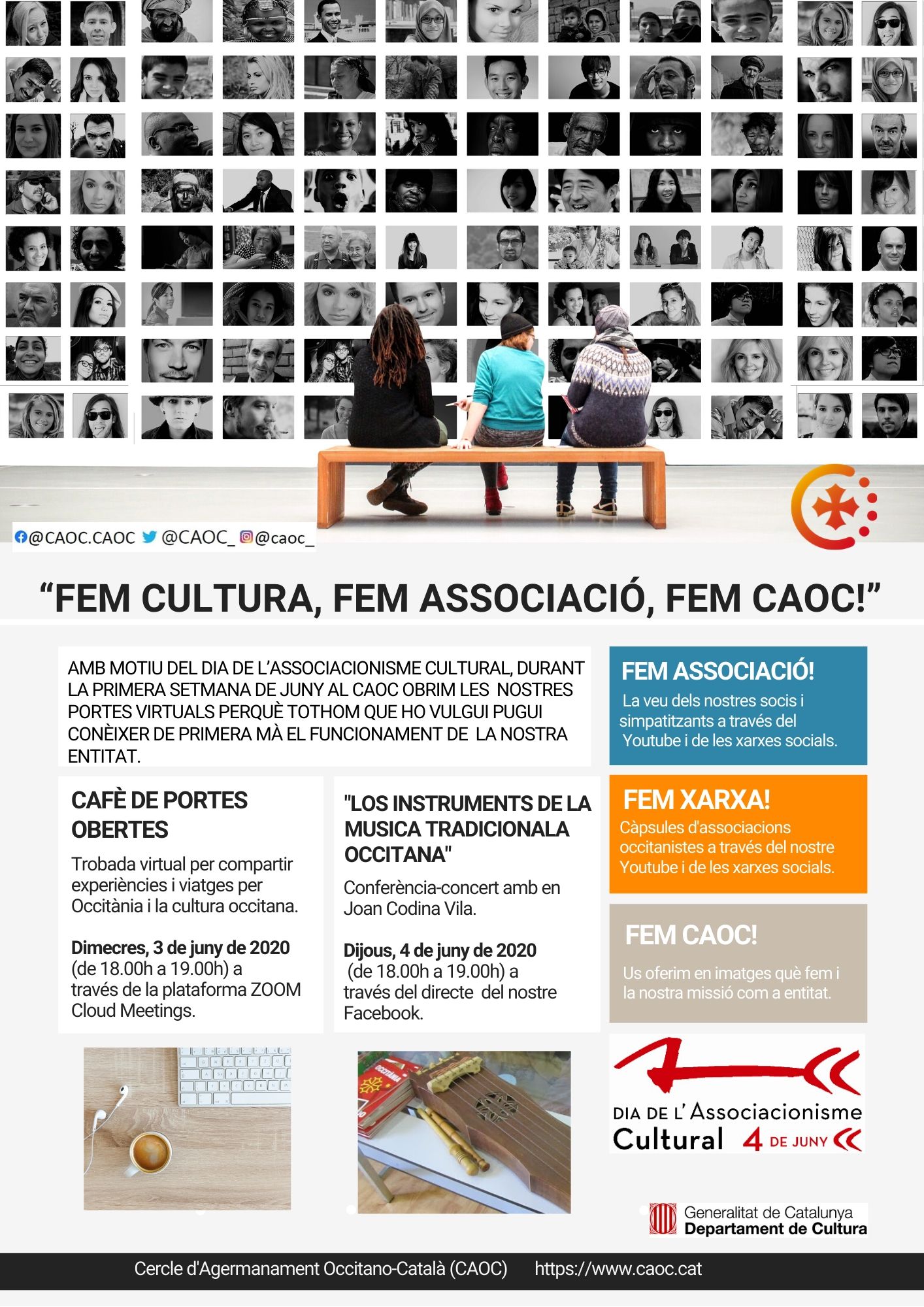 🔹 I, durant tota la setmana us oferirem a través del nostre Canal Youtube i de les xarxes: breus 📽 Càpules “Fem cultura, fem associacionisme, fem CAOC” dels nostres socis, simpatitzants o associacions amb les que col·laborem que ens parlaran sobre la seves experiències amb l’entitat o la seva tasca relacionada amb la llengua i cultura occitanes. Canal Youtube