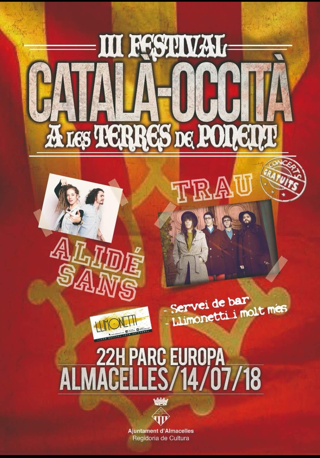Aquest dissabte, 14 de juliol, Almacelles (Segrià) celebrarà el III Festival català-occità a les Terres de Ponent, amb les actuacions de la cantant aranesa Alidé Sans i el grup català Trau.