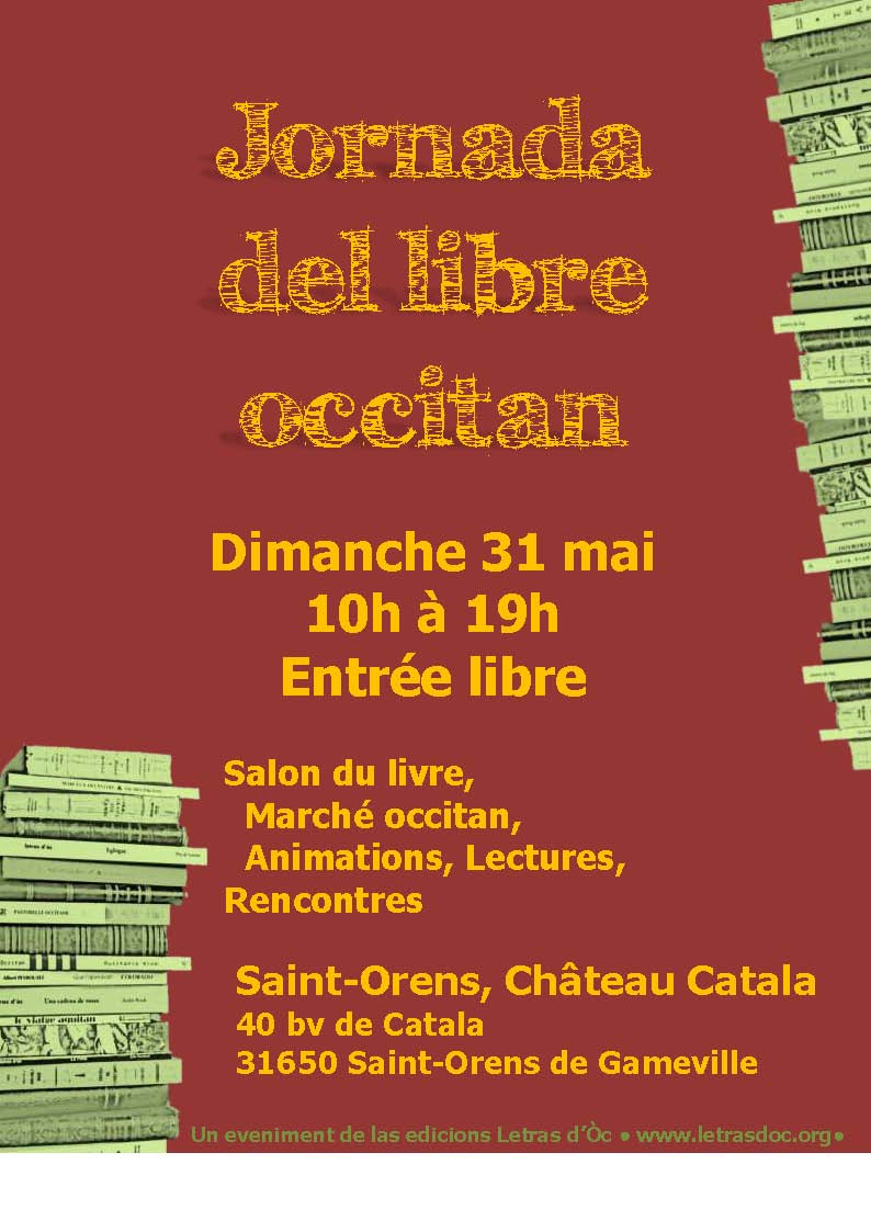La Jornada del libre occitan es un eveniment organizat per Letras d’òc e se debanarà dimenge que ven, 31 de mai, al Castèl Catalan de Sent Orenç (Tolosan).