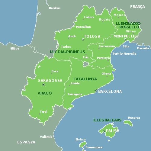 L’Euroregió és la unió de Catalunya, les Illes Balears, el Llenguadoc-Roselló i el Migdia Pirineus, és a dir, la franja nord oest dela Mediterrània amb l’objectiu de dur a terme projectes i intercanvis culturals, econòmics i socials més enllà de les fronteres.