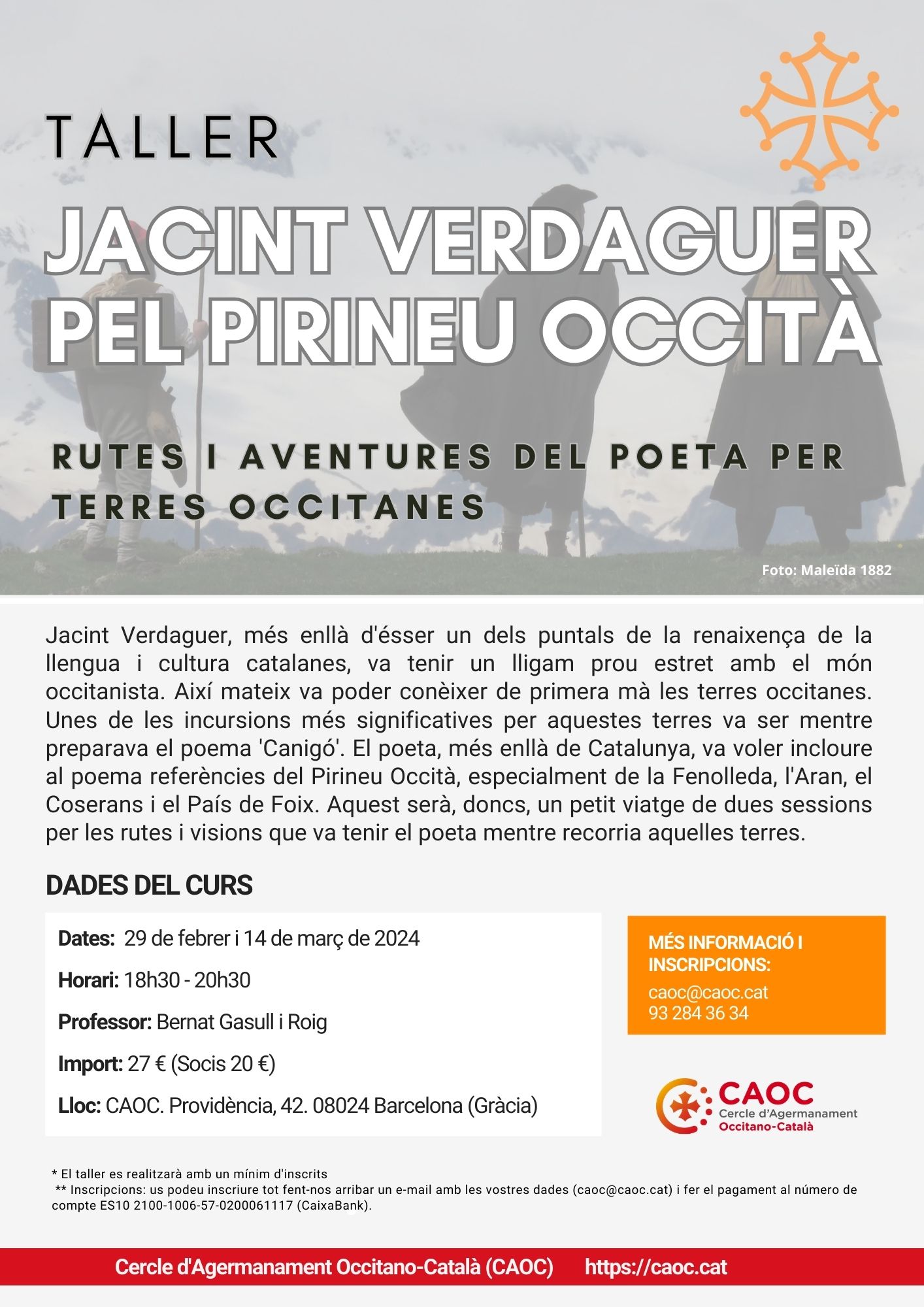 Jacint Verdaguer, més enllà d’ésser un dels puntals de la renaixença de la llengua i cultura catalanes, va tenir un lligam prou estret amb el món occitanista. Així mateix va poder conèixer de primera mà les terres occitanes. Unes de les incursions més significatives per aquestes terres va ser mentre preparava el poema ‘Canigó’. El poeta, més enllà de Catalunya, va voler incloure al poema referències del Pirineu Occità, especialment de la Fenolleda, l’Aran, el Coserans i el País de Foix.