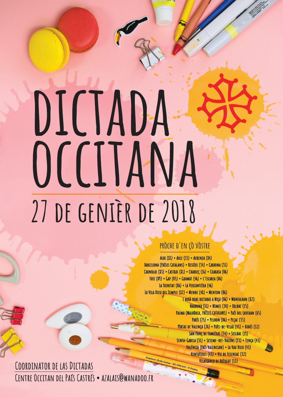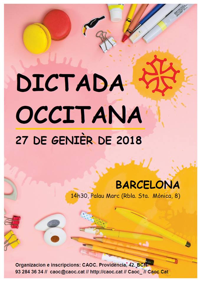 er torna la Dictada Occitana, un dictat en occità que des de fa 21 anys es fa de forma simultània a més de 40 ciutats d’Occitània i els Països Catalans. Un esdeveniment singular i únic i que a Barcelona té lloc al Palau Marc, un casal senyorial del segle XVIII, avui seu del Departament de Cultura.