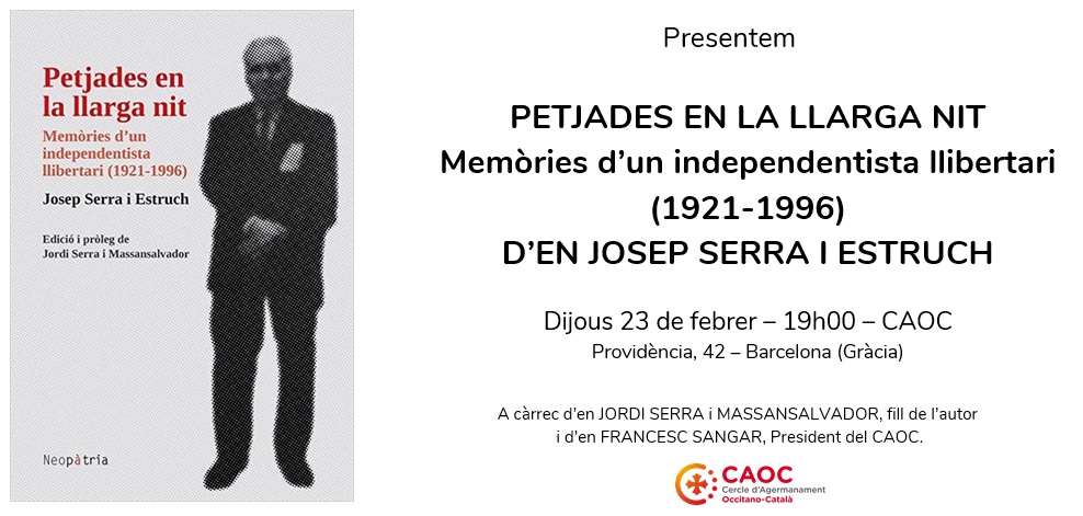 Però en JOSEP SERRA i ESTRUCH mostrà sempre un gran interès i una gran estimació per Occitània. L’any 1985 publicà el llibre “ENTENDRE OCCITÀNIA”, mereixedor del Premi REI EN PERE i col·laborà molt activament amb la nostra entitat en la defensa dels lligams entre catalans i occitans.