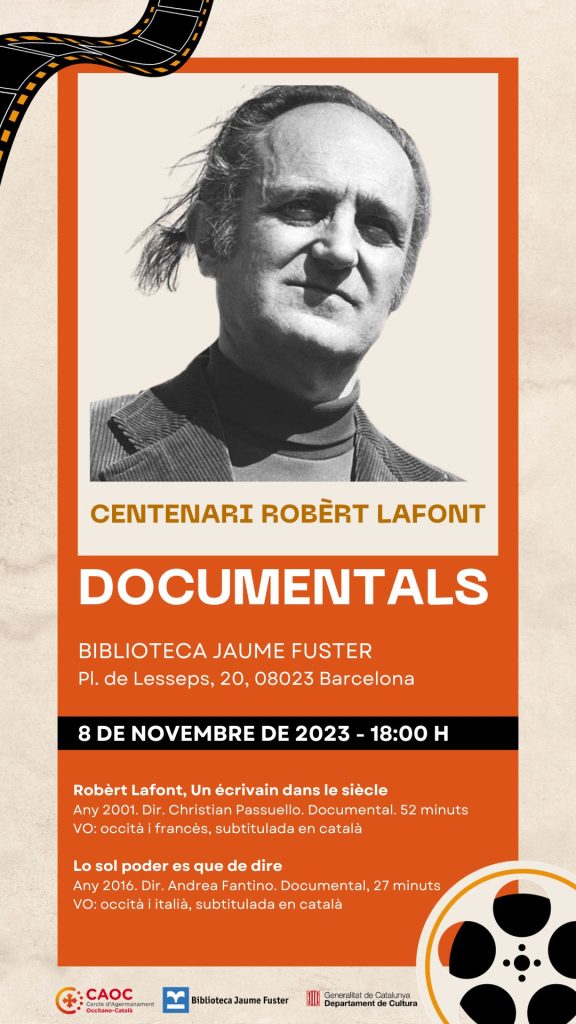Continuem els actes de commemoració del centenari de Robèrt Lafont amb la projecció de dos documentals sobre la seva vida i obra.