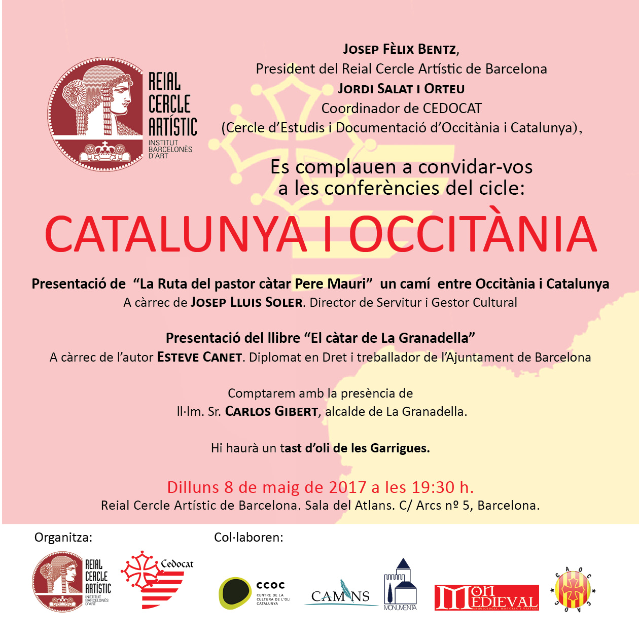 Dins la programació d’actes i conferències del “Cicle: Catalunya i Occitània”, el dilluns 8 de maig a partir de les 19h30, al Reial Cercle Artístic de Barcelona tindran lloc les següents conferències: