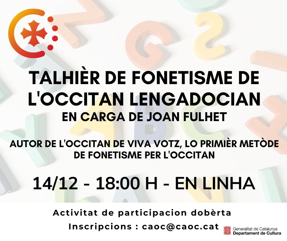 Una session practica de prononciacion de l’occitan lengadocian en carga de Joan Fulhet, autor del metòde “L’occitan de viva votz”, lo primièr metòde de fonetisme per l’occitan, una aisina primordiala del temps que sa transmission depend majament de son ensenhament.