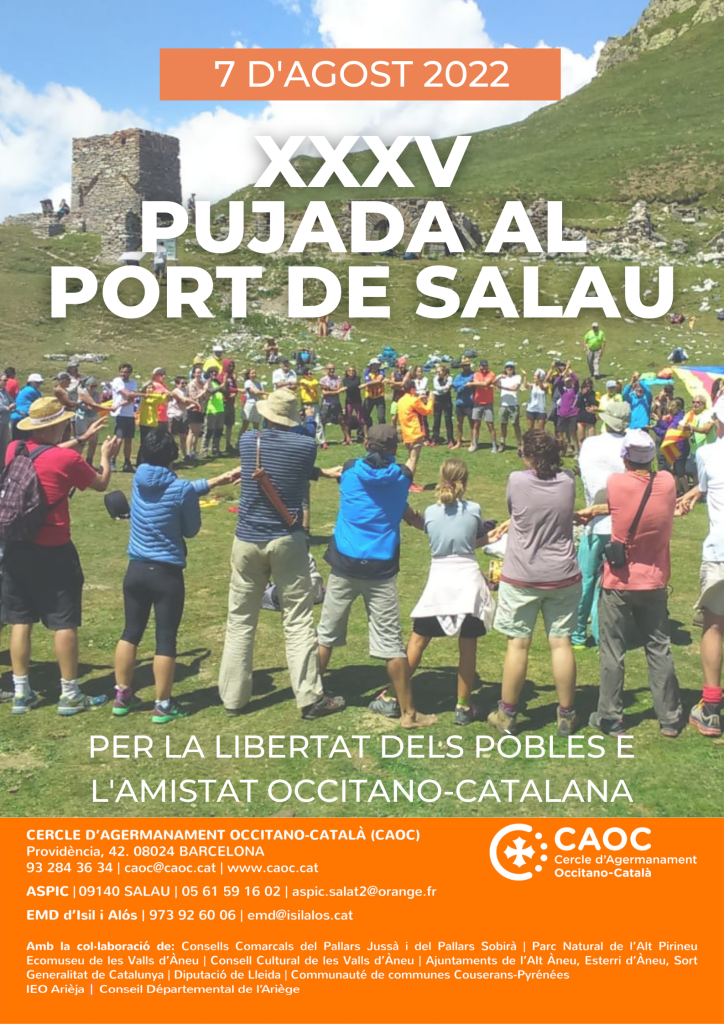 El proper diumenge 7 d’agost, i després de dos anys que la pandèmia no ens ho ha permès, tindrà lloc un dels esdeveniments més representatius de l’agermanament occitano-català, la pujada al Port de Salau, un port de muntanya a 2100 metres d’altitud que uneix el Pallars Sobirà amb l’Arieja.