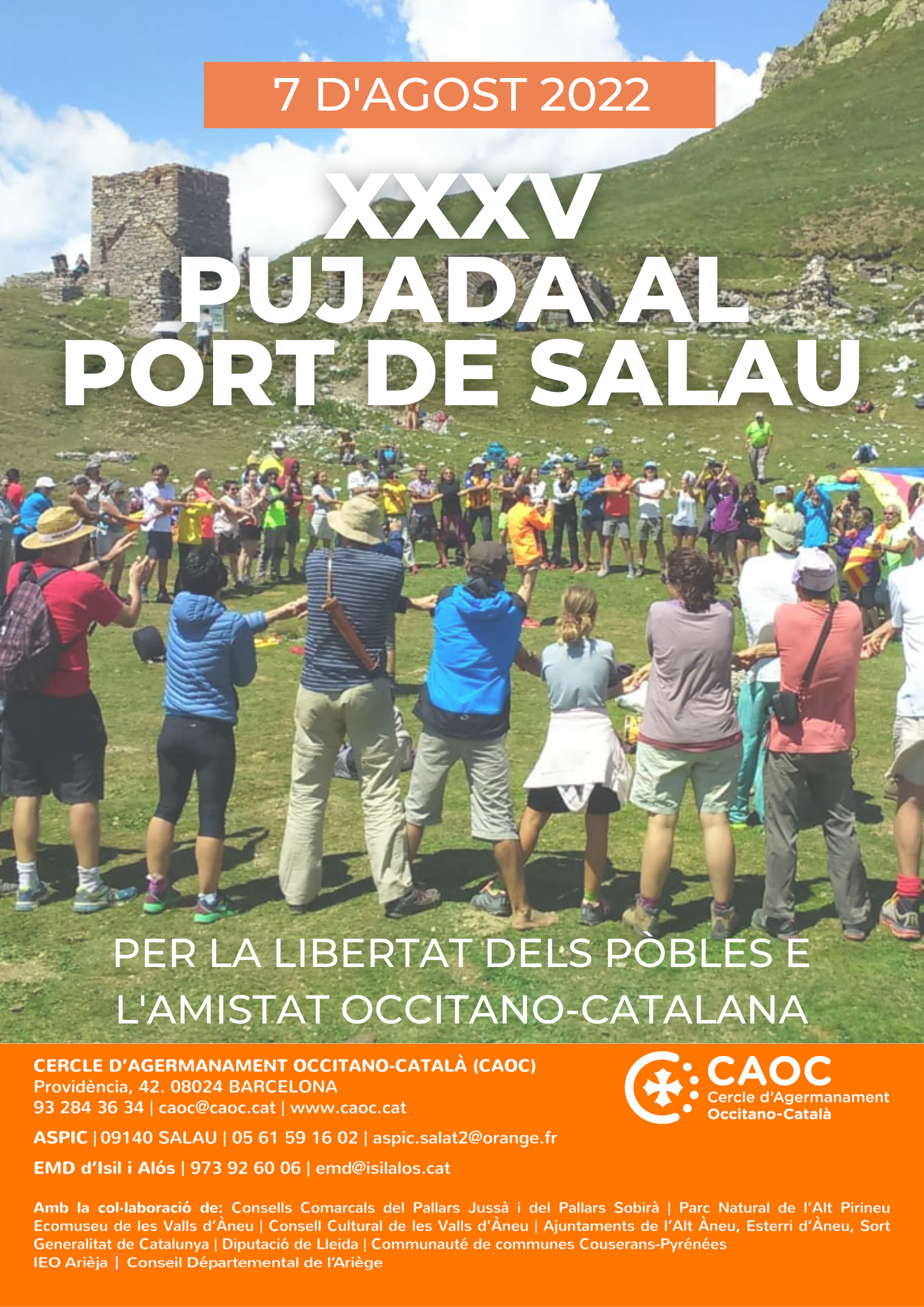 Des de fa 35 edicions, catalans i occitans ens trobem el primer diumenge d’agost en aquest port del Parc Natural de l’Alt Pirineu per reivindicar la nostra història comuna i les nostres llengües germanes, però per sobre de tot fem d’aquesta data una jornada festiva en la qual la música i les danses tenen un paper principal, així com el vi català i el formatge occità que compartim tots a dalt del port. Fem del Pirineu un lloc d’unió entre occitans i catalans, almenys per un dia les nostres llengües es barregen i el sentiment de germanor és més gran que mai.