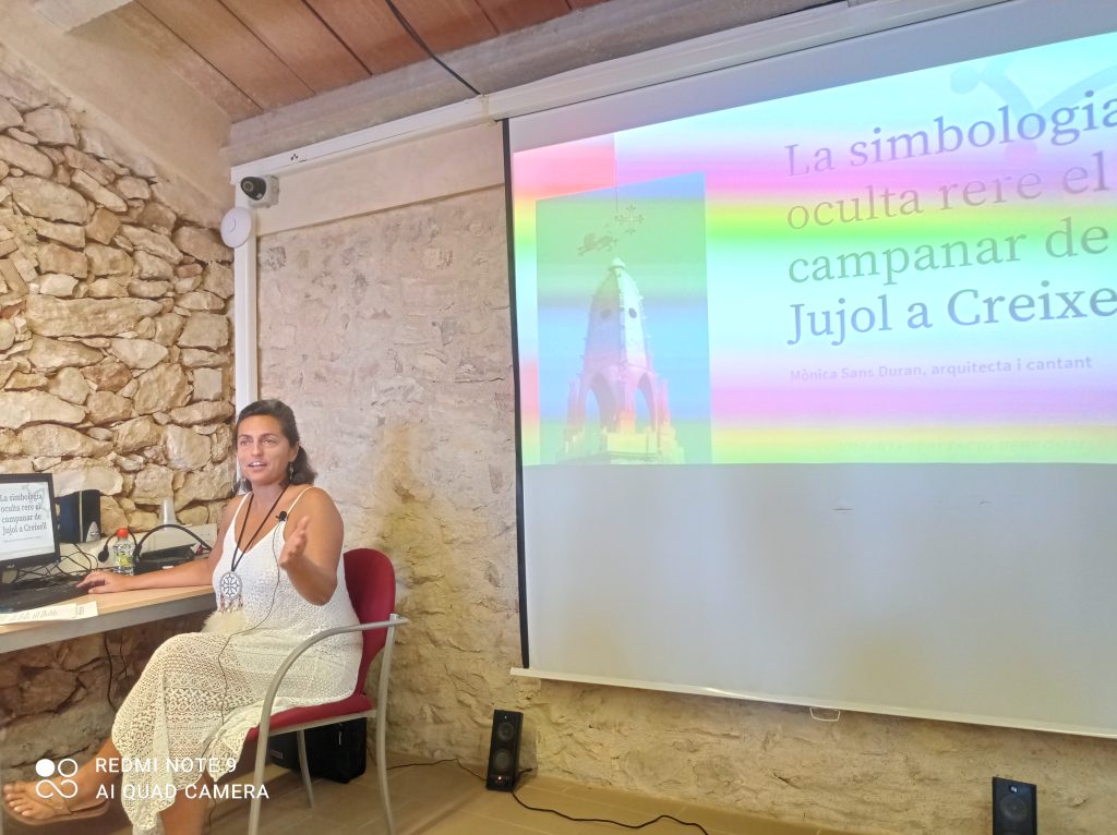 Posteriorment la cantant i arquitecta Mònica Sans explicà les descobertes que ha trobat investigant el simbolisme del campanar dissenyat per l’arquitecte modernista Josep Maria Jujol, on podem trobar una bandera occitana i un lleó esporuguit. Quina relació tenia en Jujol amb Occitània? Potser amb el Catarisme? Què pretenia en Jujol fer-nos saber amb aquesta peculiar estructura?